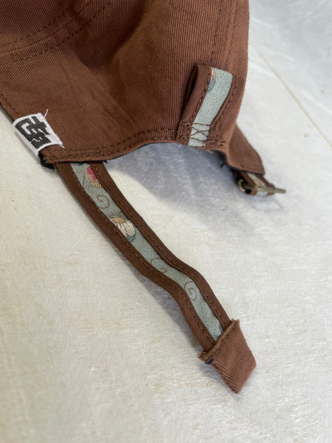 カラビナストラップと調節ベルトがワンポイントアクセントです。