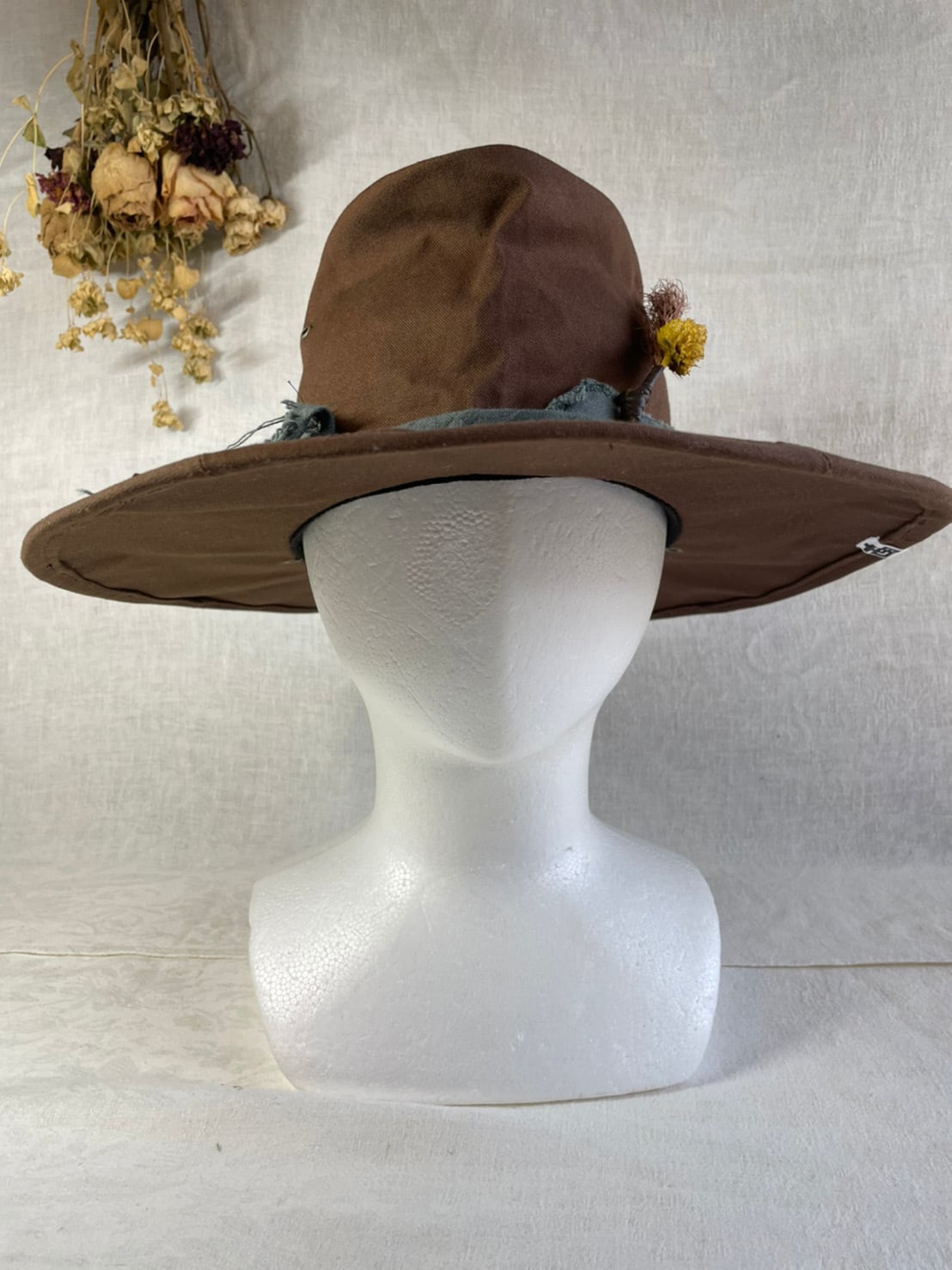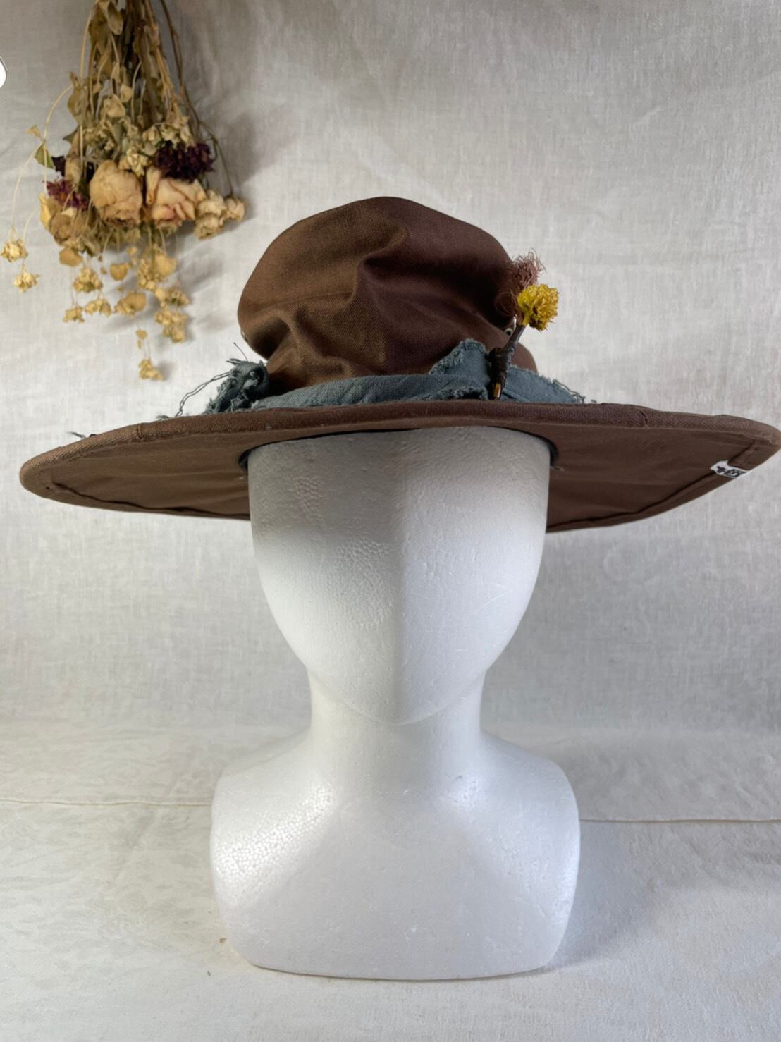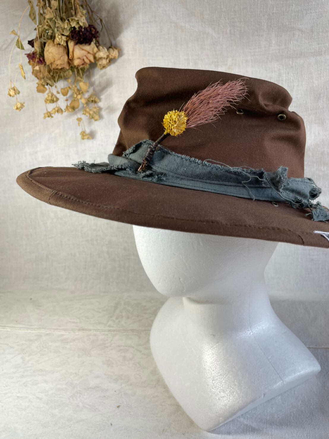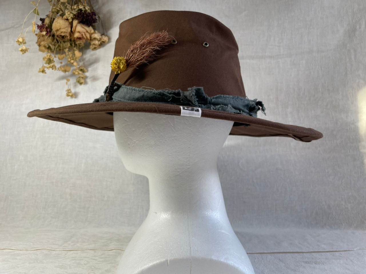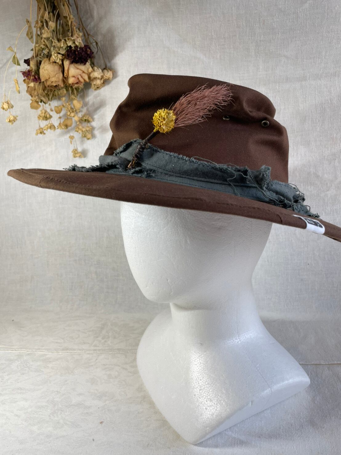 染色したハギレリボンにドライフラワーが印象的です